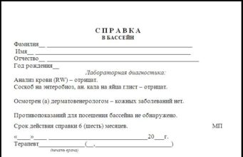 Для того, чтобы начать ходить в бассейн потребуется предоставить специализированную справку по унифицированной форме.