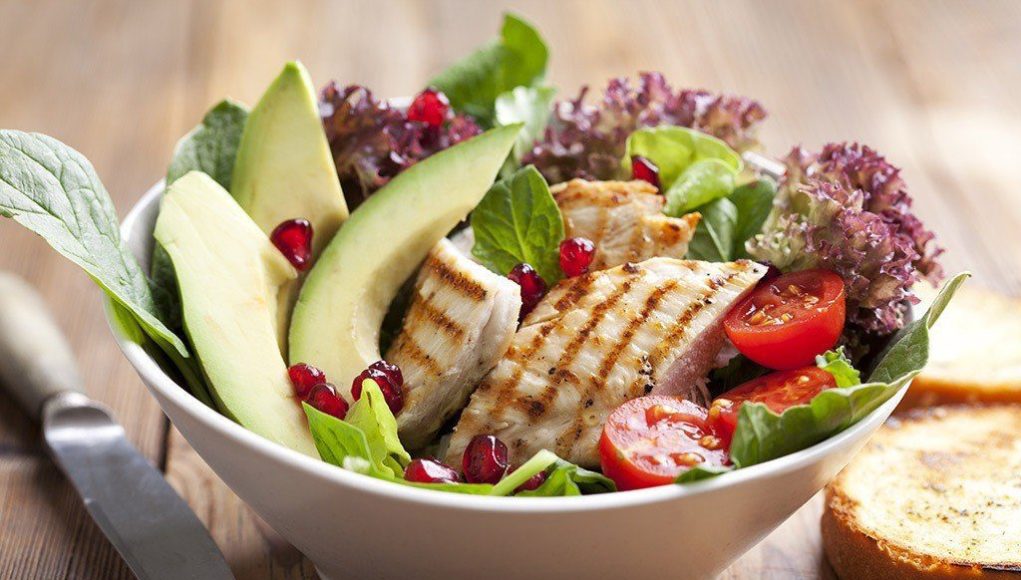 3. Вареное куриное филе + огурец + авокадо + красный лук + оливковое масло