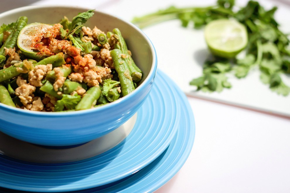 4. выкладываем фасоль к тушеному фаршу с луком и морковью