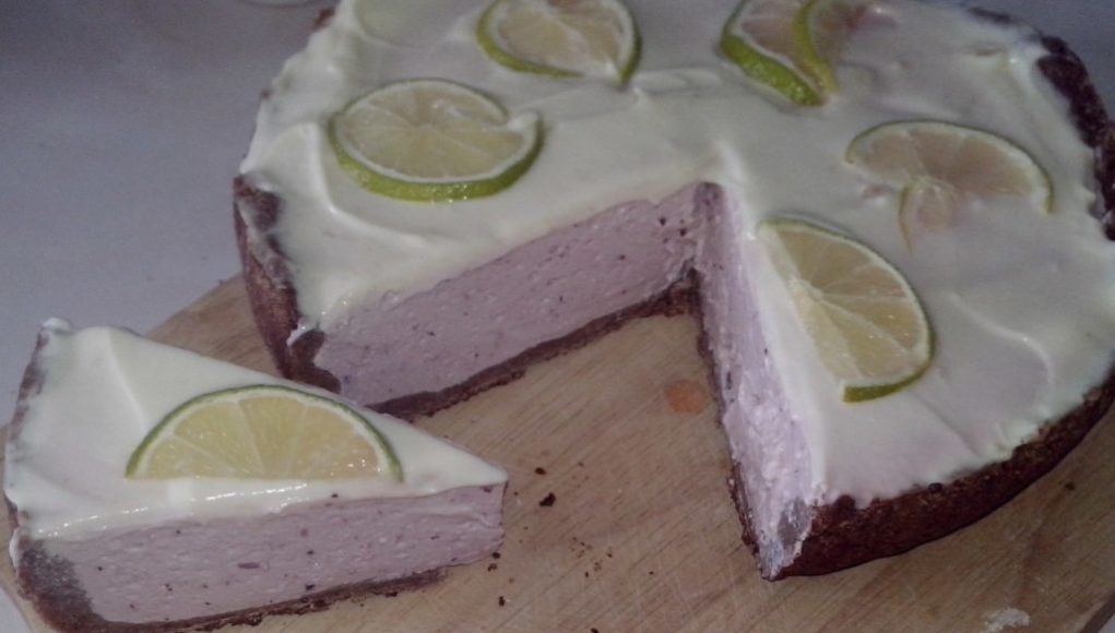 8. Корж вытащить из духовки, остудить и влить в него творожную смесь, помазать оставшимся йогуртом верх, украсить кусочками фруктов, поставить в холодильник на ночь (или на сколько хватит терпения).