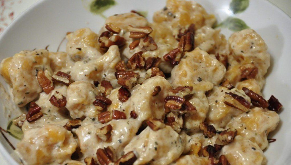 3. Готовим сливки: В глубокой тарелке давим чеснок, трём туда сыр, добавляем мелко порезанный укроп, заливаем сливками, добавляем немного прованских трав и перемешиваем.
