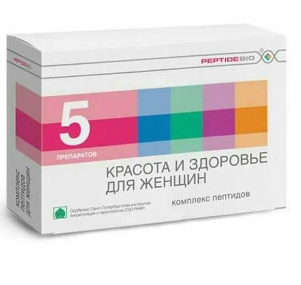 Женские пептиды предлагаются готовым курсом, рассчитанным на два месяца. В результате применения улучшается трофика тканей, повышается иммунитет, нормализуется обмен веществ. Готовый курс рекомендуется женщинам любого возраста, старше 18 лет. Противопоказания к приему: беременность.
