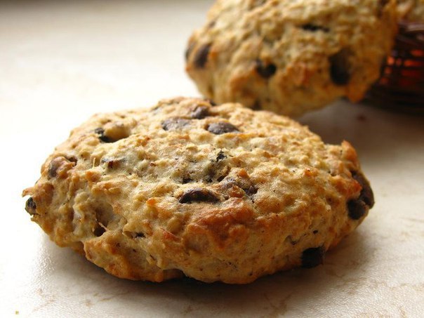 Выложить по столовой ложке теста на противень, застеленный силиконовым ковриком, мокрыми руками придать печеньям приличную форму.
