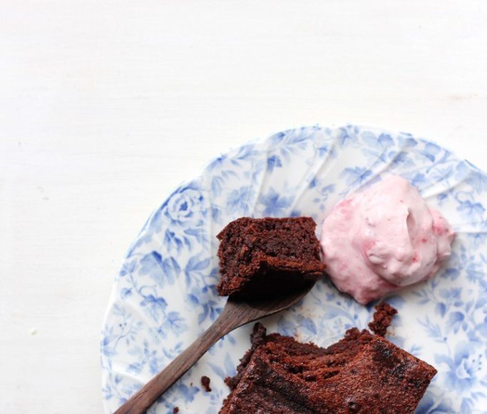 Сделать тесто из муки, какао, кефира и яиц. В форму для выпекания выложить половину получившейся смеси, затем выложить на нее вишню. И сверху залить оставшимся тестом! Выпекать до готовности теста!