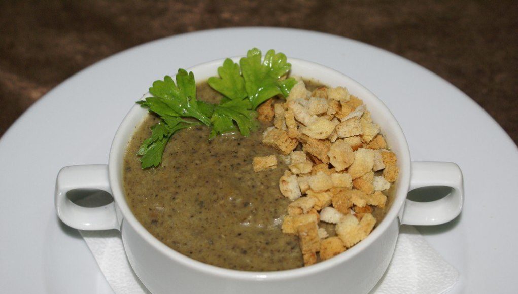 7. Разложить на тарелки, добавить сухарики и зелень по вкусу.