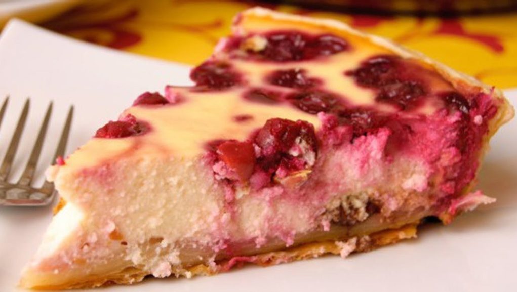 Готовую основу слегка остудить, выложить на нее творожную массу, равномерно ее распределить. Сверху аккуратно выложить вишню. Поставить торт в духовку, выпекать около получаса.