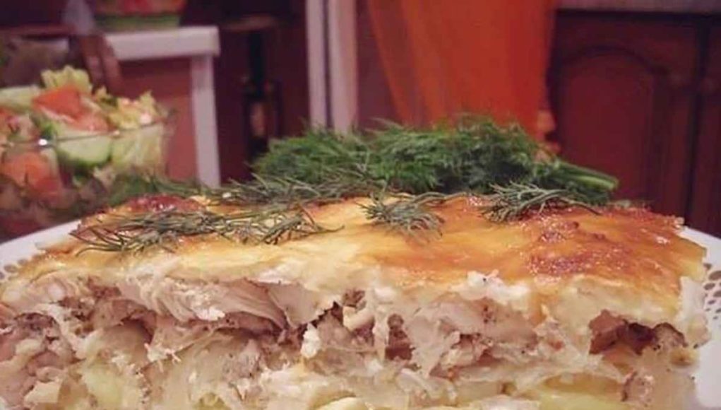 Поставить в горячую духовку, запечь до румяной корочки. За 10-15 минут до готовности посыпать зеленью.